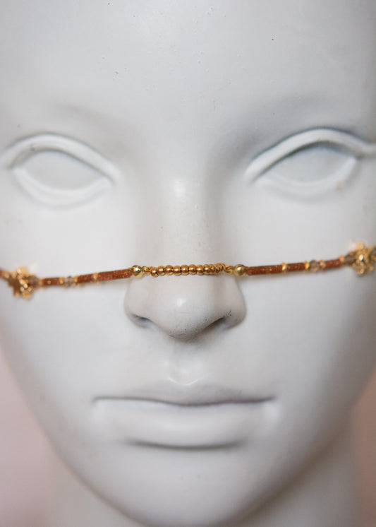 Ornements métalliques qui encadrent et décorent le visage, la création signature de NOHARÀ particulièrement appréciée pour les festivals !